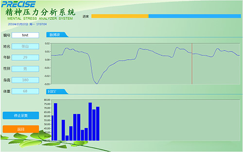 心率变异性是指逐次心搏间期的微小差异,它产生于自主神经系统对心脏窦房结的调制,这种微小差异变化能够反映自主神经系统活性及其平衡协调的关系,从而客观的反映大脑所承受的压力。因此,心率变异性被做为反映人体精神压力最理想的指标。经过科学实验和反复论证,心率变异性已经成为目前测定人体精神压力最客观、准确和直接的方法。